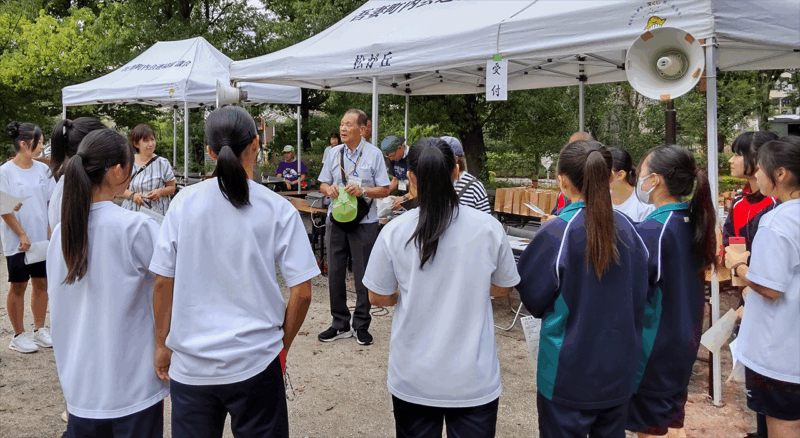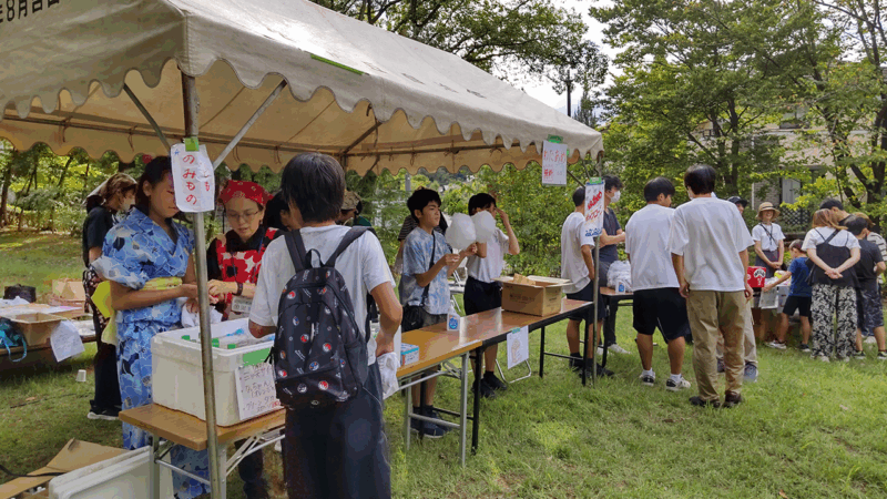 連日の猛暑と頻発するゲリラ豪雨で開催が心配されましたが、幸いにも比較的涼しい好天の下で理事や行事担当班長、活動部、南・荒幡小PTA、交通安全協会、会員サポーターの皆様のご協力により無事滞りなく実施することができました。また、南陵中学校からは生徒ボランティアスタッフ15名の皆さんが手伝いの協力に駆けつけ、秋祭りを盛り上げてくれました。今年は秋祭りに変更してから初めての公園開催でありましたが、おかげさまで多数の方の来場がありました。皆様のご協力とご支援に深く感謝申し上げます。