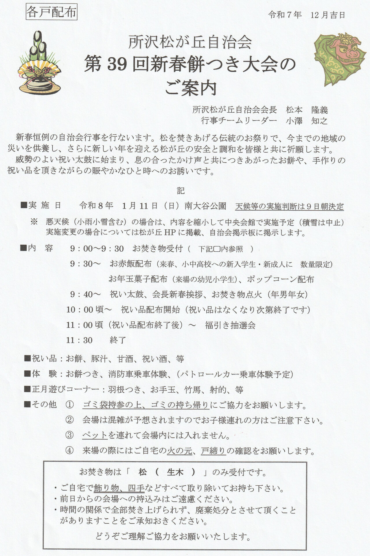 第39回新春餅つき大会のご案内